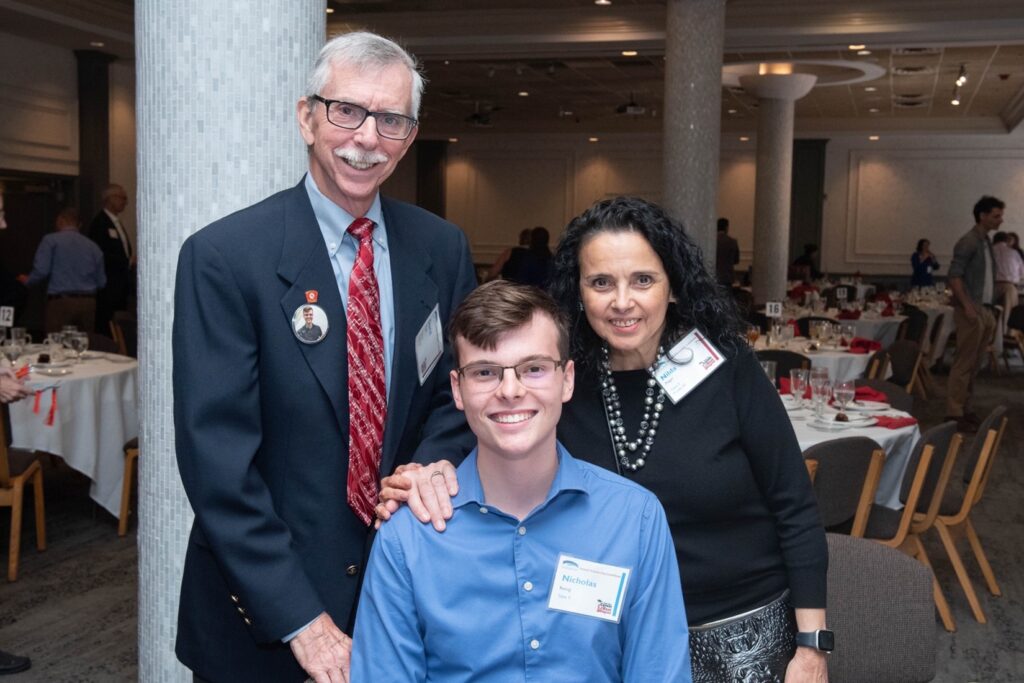 Photo caption: Donors David and Nilda Mager with scholarship recipient Nicholas Romig at the 2023 scholarship luncheon.