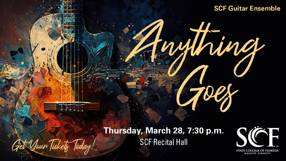 SCF Music Program Guitar Ensemble March 28, 2024 @ 7:30pm Studio for the Performing Arts Recital Hall, Bldg. 11A Anything can happen when SCF Guitar Ensemble takes the stage with SCF guitar alumni and guitarists from local schools to create a one-of-a-kind guitar orchestra! Visit scf.edu/music and check out SCF Music on Facebook.  BUY TICKETS