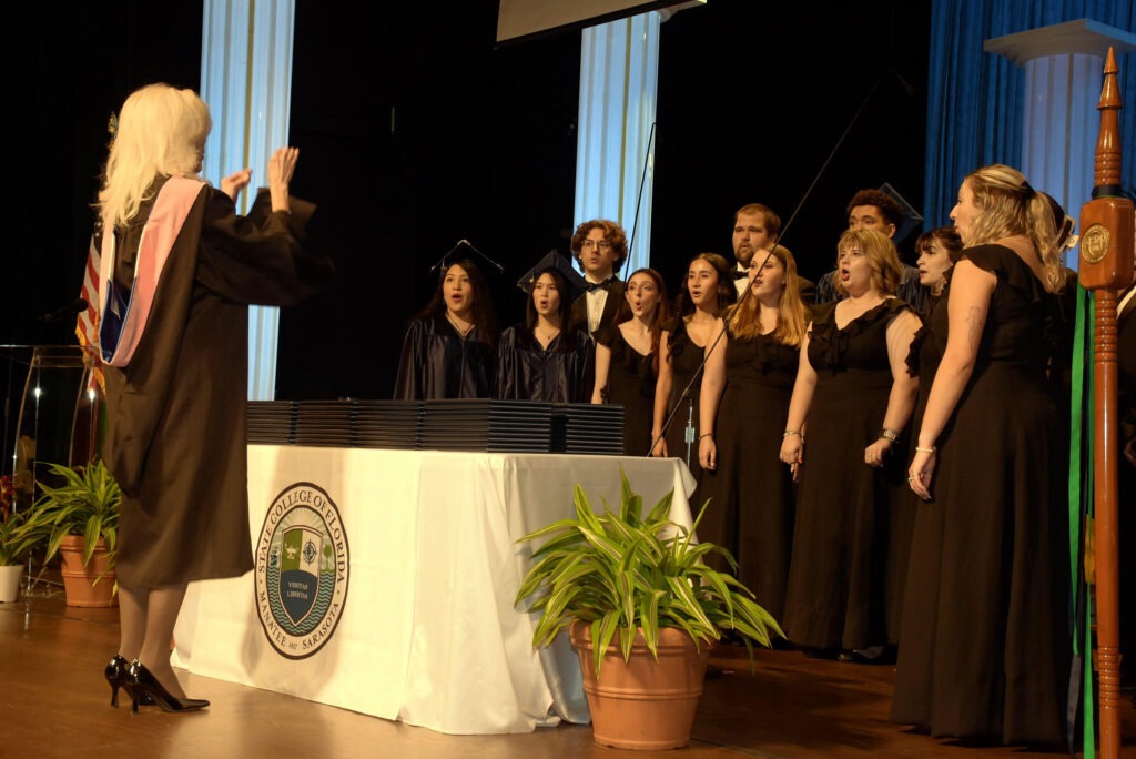 Twice a year, SCF holds a commencement ceremony at the Neel Performing Arts Center on the Bradenton campus, providing graduates with a memorable opportunity to celebrate their achievements alongside family, friends, and faculty.