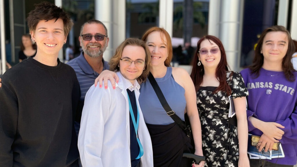 Photo caption: SCF nursing program graduate Simon Borner (third from right) and his family celebrate at the SCF nursing pinning ceremony at SCF Bradenton.