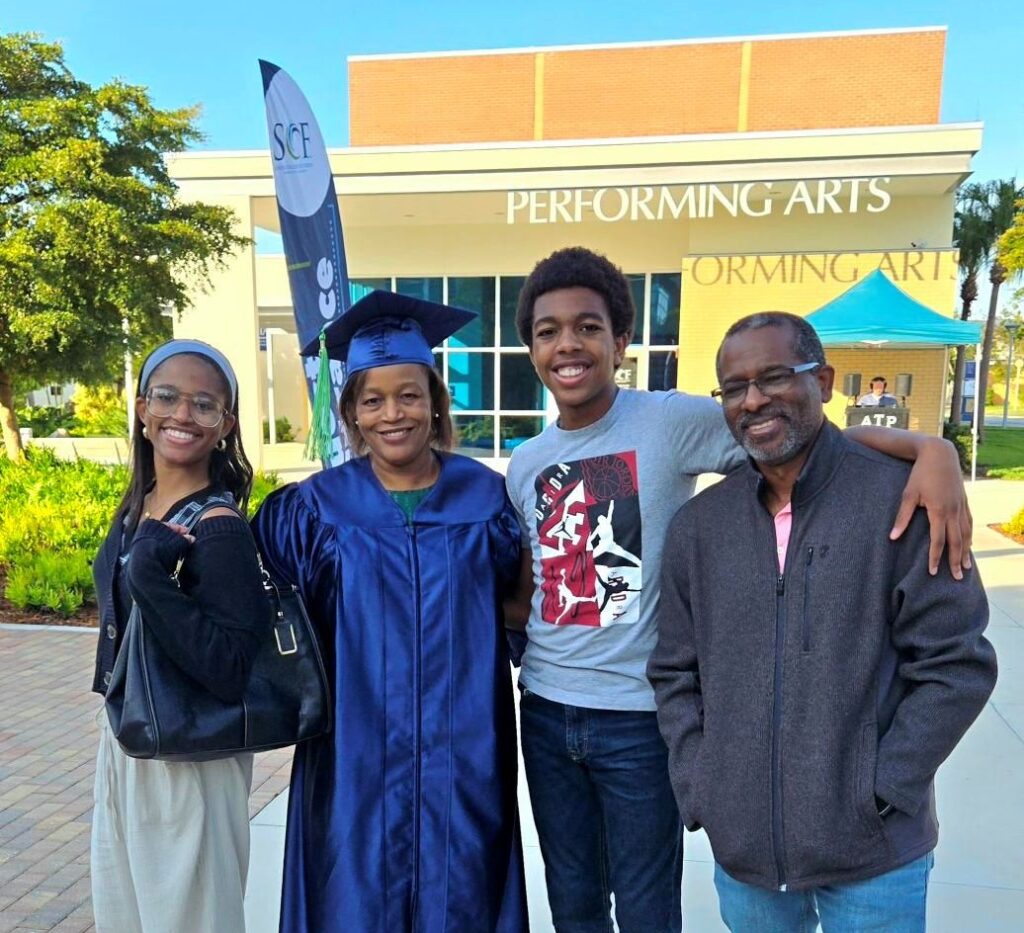 Photo caption: SCF graduate and her family attend SCF Bradenton’s Winter 2025 grad walk ceremony.