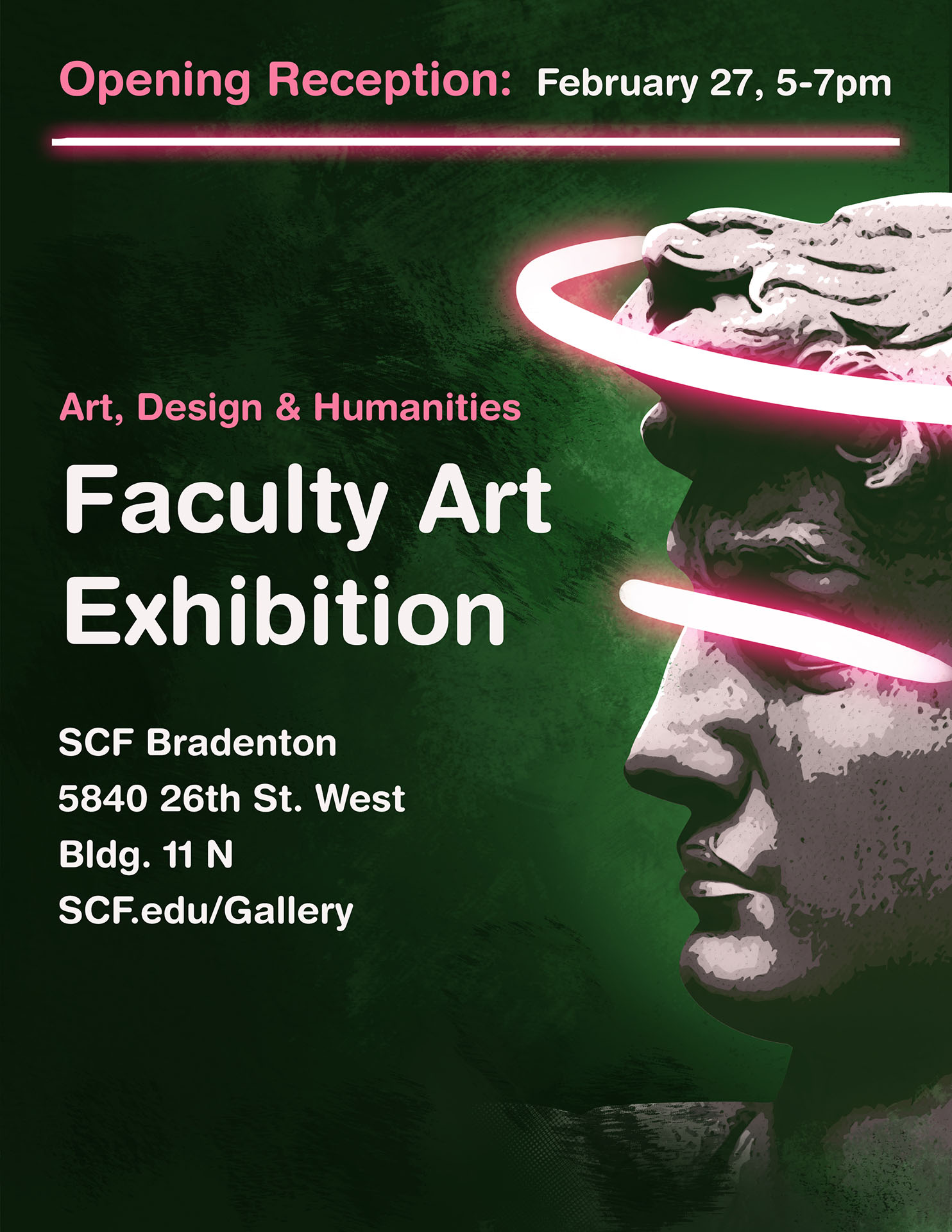 The Gallery at SCF, Bldg. 11 5840 26th St. West, Bldg. 11, Bradenton, FL, United StatesPresented by The Gallery at State College of Florida, Manatee-Sarasota Thursday, February 27th, 5:00 p.m. - 7:00 p.m. SCF Bradenton Campus, 5840 26th St. West Building 11N This showcase exhibition features the professional work of our ADH Faculty artists. This show will be on view until March 26, and will be followed by the Student … Continued